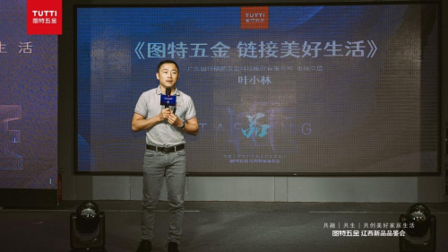 圖特五金市場總監葉小林以《圖特五金 鏈接美好生活》為主題進行演講,分享家居行業形勢與圖特品牌優勢,提及圖特的企業使命——“聚焦技術與服務創新,共創美好家居生活”。他表示,目前圖特五金憑借科學的生產管理體系、高標準的品質管理體系、數字化的智能工廠、全球化的營銷服務等等,能夠為用戶提供隱藏、智能、舒適的全屋家居五金系統解決方案。